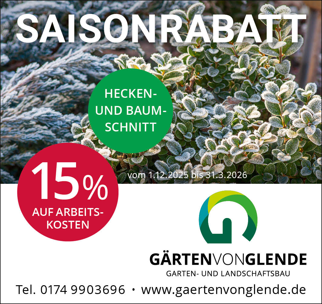 Wir kümmern uns um Ihre Hecken und Bäume. Nutzen Sie unseren Schnitt-Service und sichern Sie sich 15 % Rabatt auf alle Arbeitskosten. Vereinbaren Sie jetzt schon Ihren Termin.